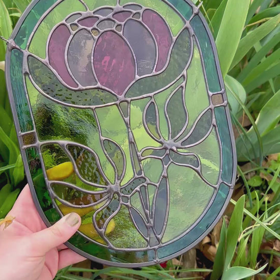 This is a digital download of the NOUVEAU PEONY stained glass pattern created by Lucky Cat Glass Works. This project is designed for the copper foil stained glass method.