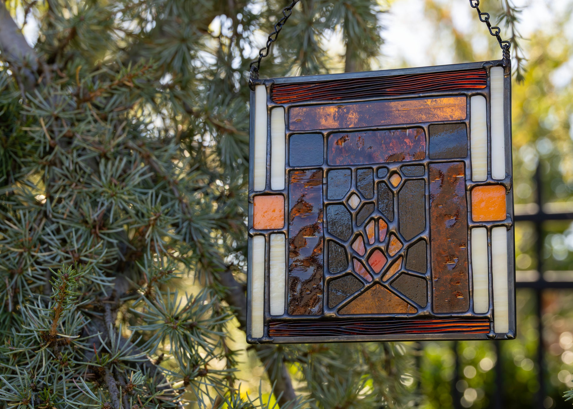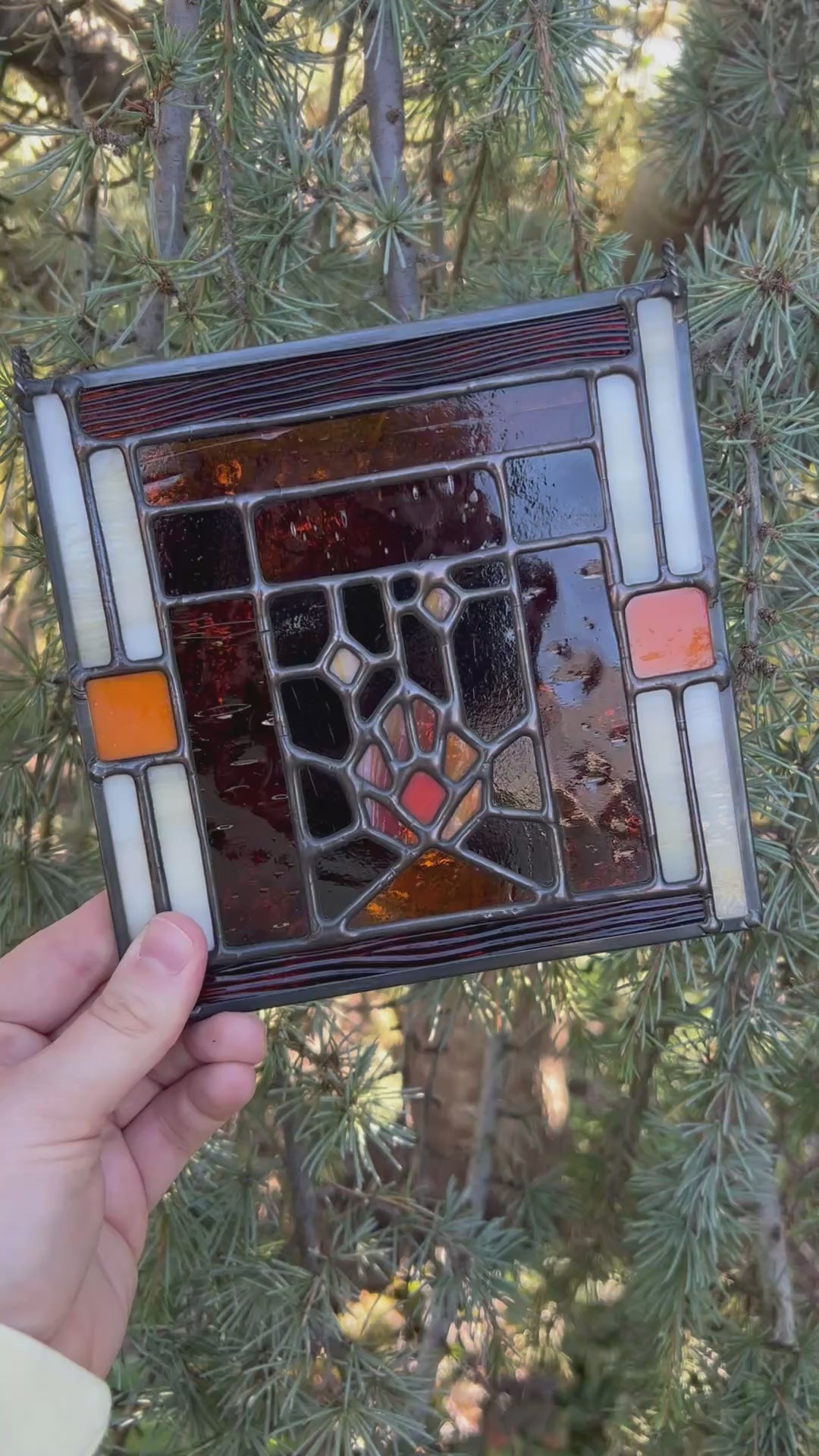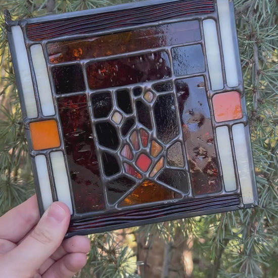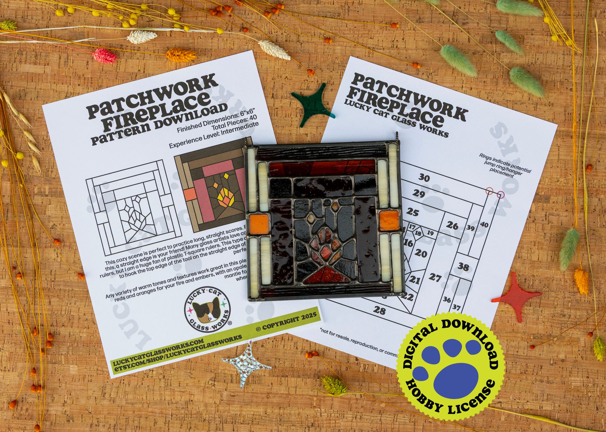 This is a digital download of the PATCHWORK FIREPLACE stained glass pattern created by Lucky Cat Glass Works. This project is designed for the copper foil stained glass method.
